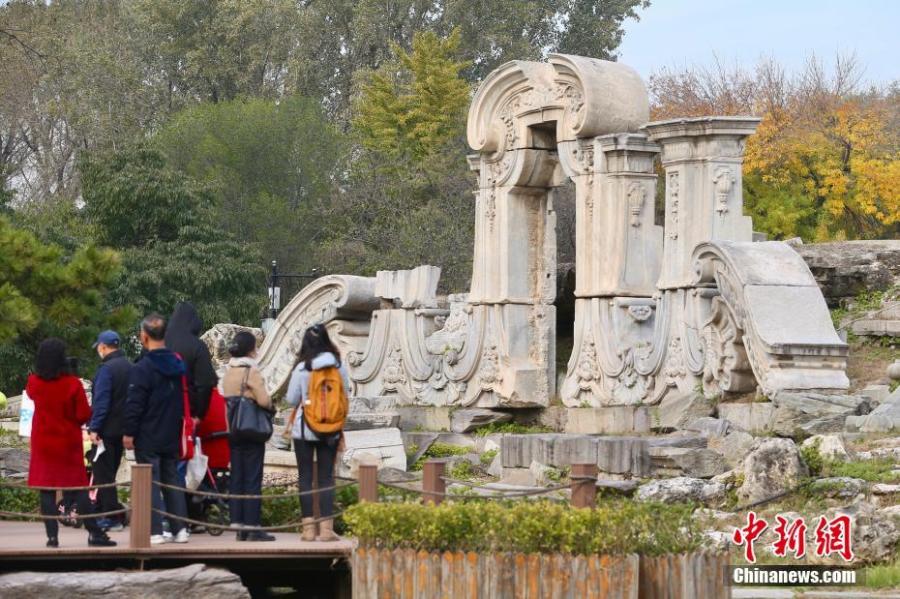 Tourists visit the Dashuifa Site at Yuanmingyuan Ruins Park, Oct. 18, 2021. (Photo: China News Service/Yi Haifei)