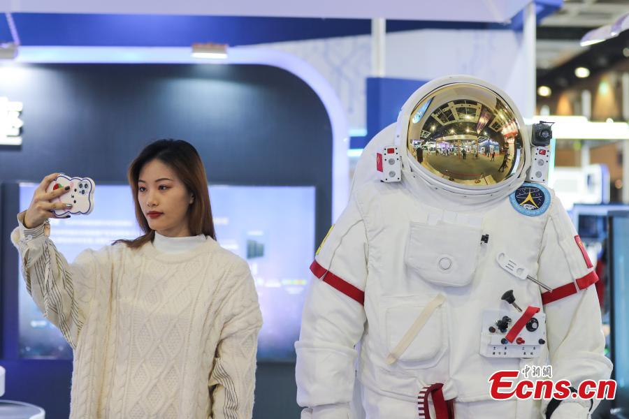 A visitor takes photos at the innovation achievements exhibition of the 2021 Global Industrial Internet Conference, Oct. 18, 2021. (Photo: China News Service/Yu Haiyang)