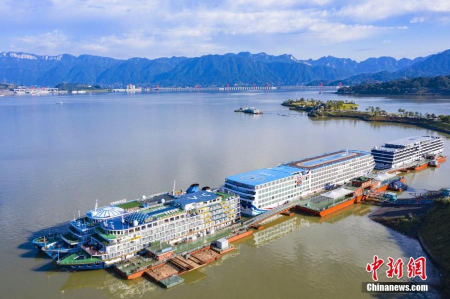 Ships berth orderly at the Three Gorges Reservoir, Oct. 19, 2021. (Photo: China News Service/Nie Shuang)