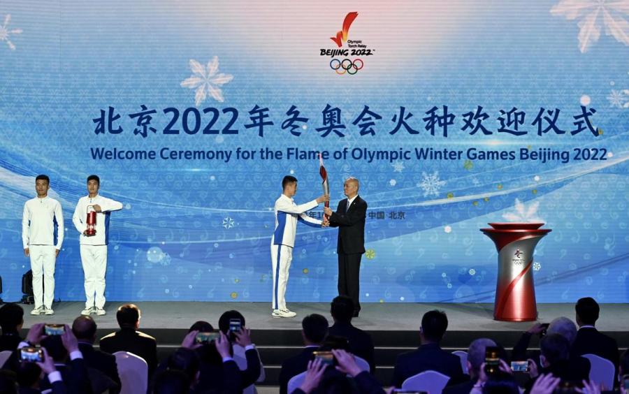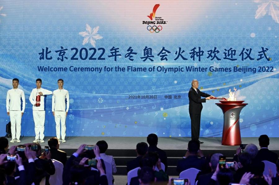 A welcome ceremony for the Olympic flame of the Beijing 2022 Winter Games is held in Beijing, Oct 20, 2021. (Photo: chinadaily.com.cn/Wei Xiaohao) A welcome ceremony for the Olympic flame of the Beijing 2022 Winter Games is held at the Beijing Olympic Tower near the 'Bird's Nest' National Stadium, which hosted the opening ceremony of the 2008 Summer Olympics.