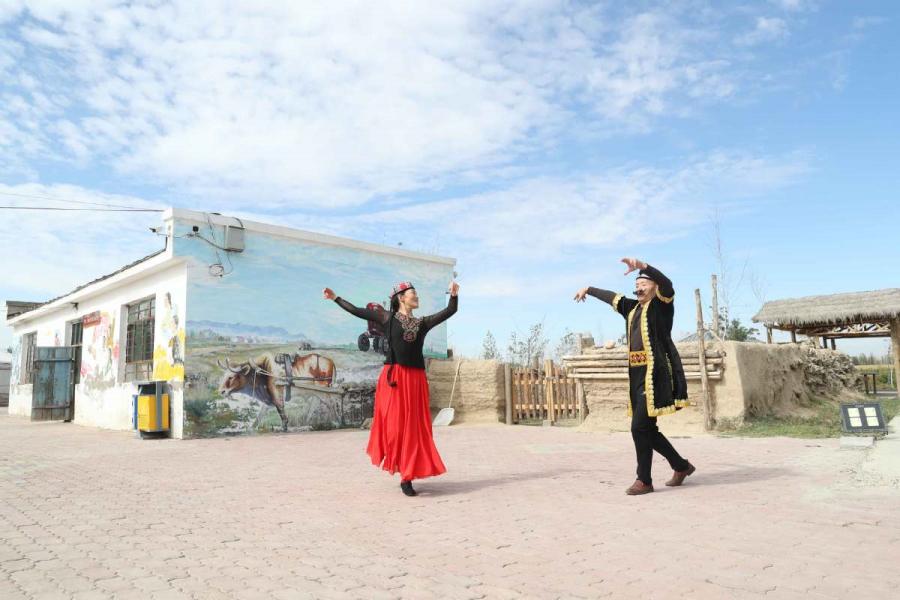 Villagers dance at a village in Tacheng, Xinjiang Uygur autonomous region, on Sept 23, 2021.(Photo: chinadaily.com.cn/Zou Hong)