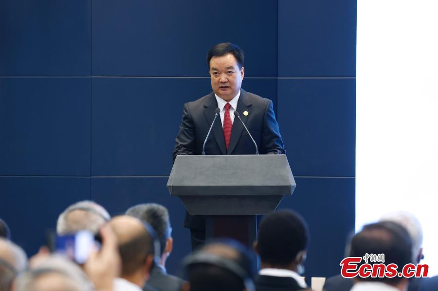 Yan Jinhai, acting chairman of the People's Government of the Tibet Autonomous Region, introduces Tibet to the world in Beijing, Oct. 20, 2021. (Photo: China News Service/Han Haidan)