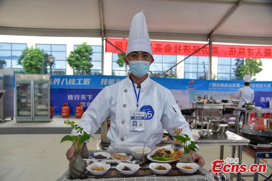 The First Vocational Skill Competition of Guangxi Zhuang Autonomous Region was held Tuesday in Liuzhou, with a total of 779 competitors competing in 26 events. The rice noodles cooking event was held Wednesday, the second day of the competition.