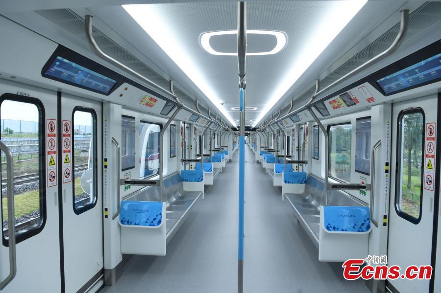 Photo taken on Oct. 20, 2021 shows the inside view of a carriage of China's first urban rail vehicle with a dual-current system in Chongqing. (Photo: China News Service/Chen Chao)