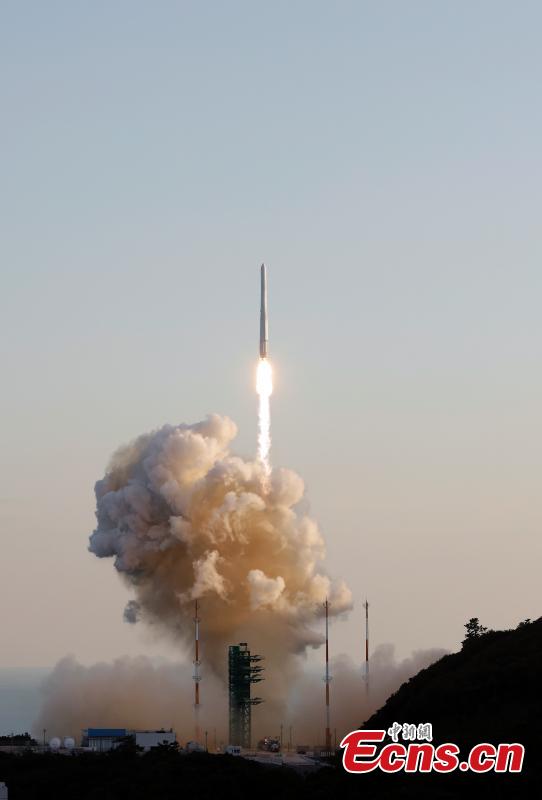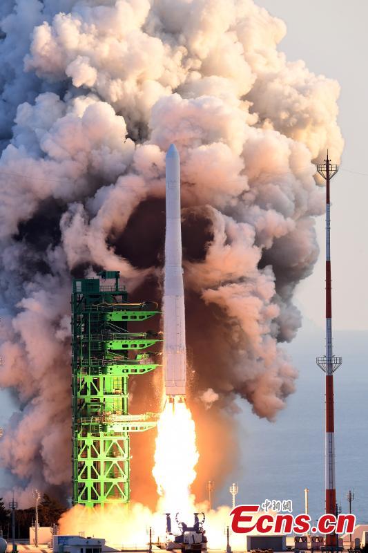 A KSLV-II rocket is launched from the Naro Space Center in Goheung, South Korea, Oct. 21, 2021. South Korea launched its first homegrown space launch vehicle Thursday, but the rocket failed in its goal of putting a dummy satellite into the orbit. (Photo provided to China News Service by Ministry of Science and ICT of the ROK)