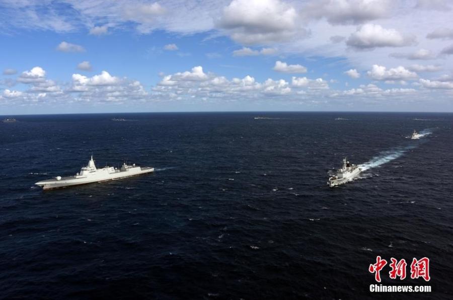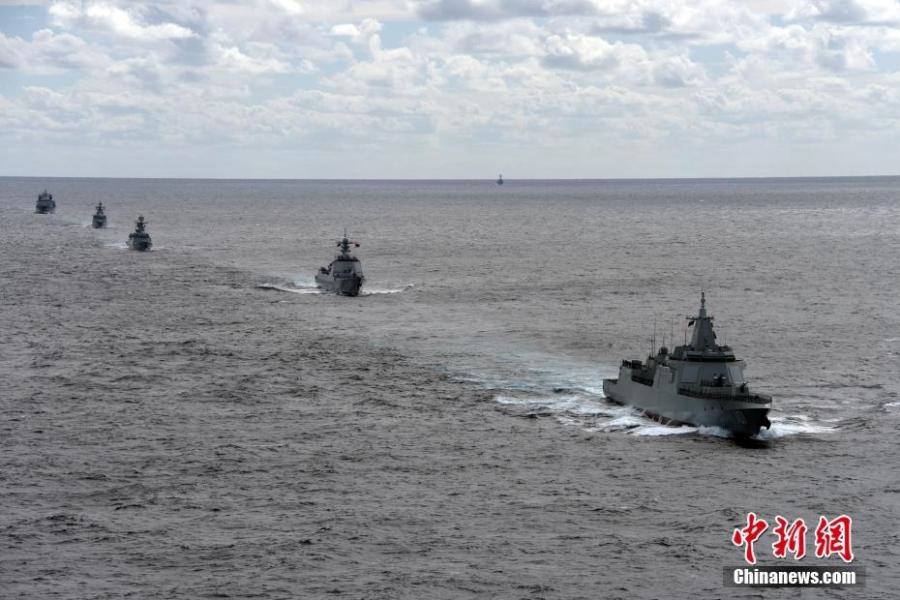 A Chinese naval flotilla sails on waters of the East China Sea after a joint maritime cruise with Russian counterparts on Oct. 23, 2021. (Photo: China News Service/Sun Zifa)