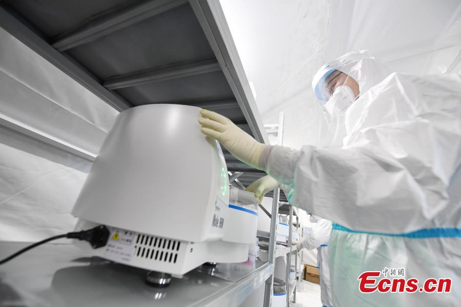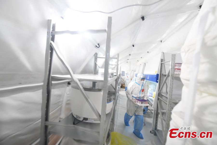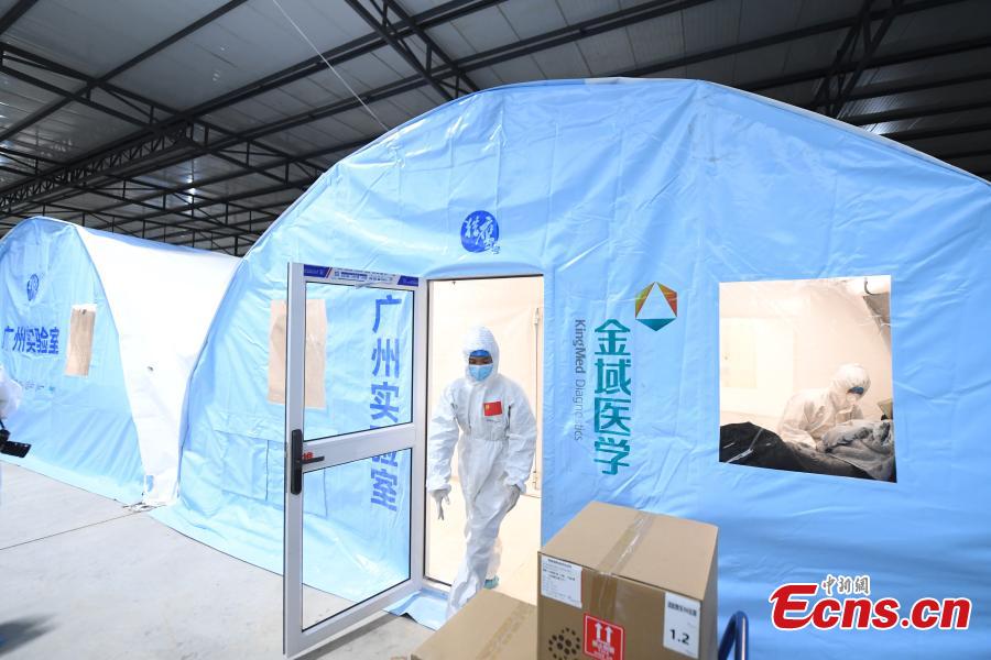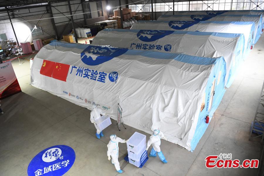 A set of "Falcon" air-inflated testing lab has been put into operation in Lanzhou, aiding the second round of citywide testing. The lab is equipped with one reagent preparation area, two sample processing areas and two amplification analysis areas, with a daily maximum testing capacity of 80,000 tubes, or 800,000 people if using pool testing methods.