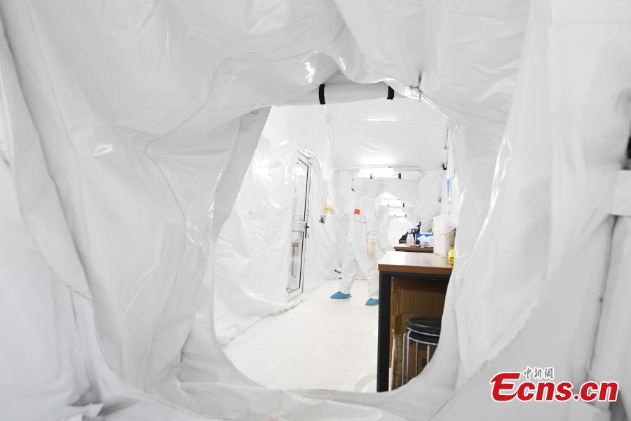 Photo taken on Oct. 25, 2021 shows "Falcon" air-inflated testing lab for COVID-19 nucleic acid testing in Lanzhou, Northwest China's Gansu Province. (Photo: China News Service/Yang Yanmin)