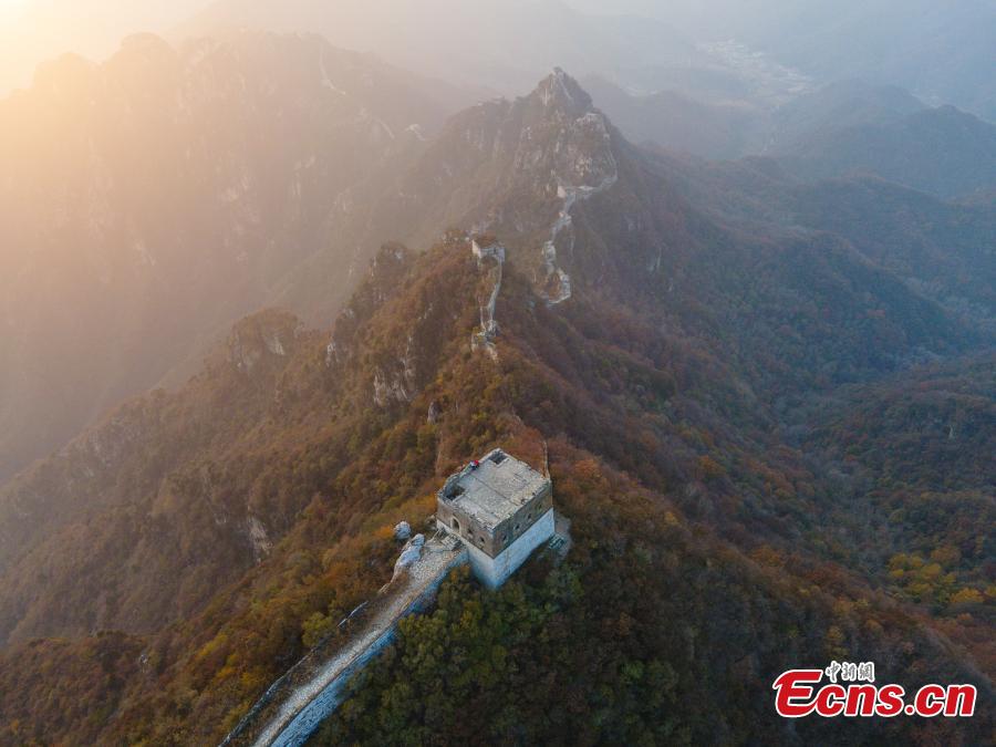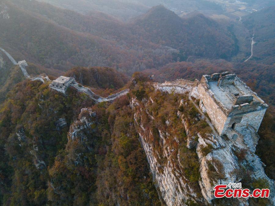 Aerial photo taken on Oct. 24, 2021 shows the late autumn scenery of Jiankou Great Wall in Beijing, capital of China. (Photo/VCG)