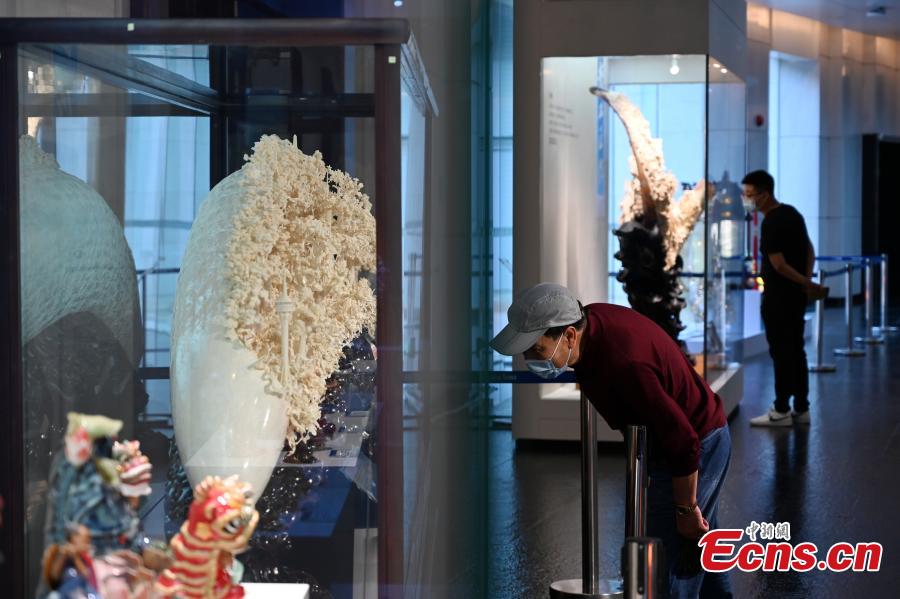 An intangible cultural heritage exhibition in Guangdong-Hong Kong-Macao Greater Bay Area attracts visitors in Guangzhou, capital of South China's Guangdong Province, Oct. 26, 2021. (Photo: China News Service/Chen Chuhong)