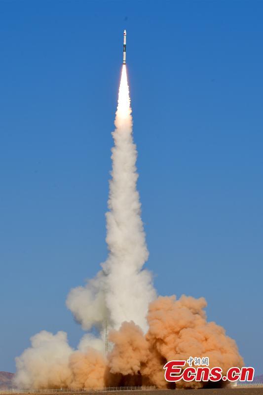 The Jilin-1 Gaofen 02F satellite is launched by a Kuaizhou-1A carrier rocket at 2:19 p.m. (Beijing Time) from the Jiuquan Satellite Launch Center in the northwest China, Oct. 27, 2021. (Photo: China News Service/Wang Jiangbo)