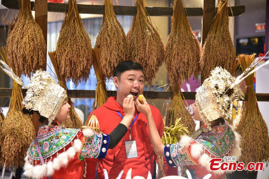 The gourmet exhibition has attracted many ethnic groups to showcase their ethnic gourmet in Liuzhou City, south China's Guangxi Zhuang Autonomous Region, Nov.2, 2021. (Photo: China News Service/Wang Yizhao)