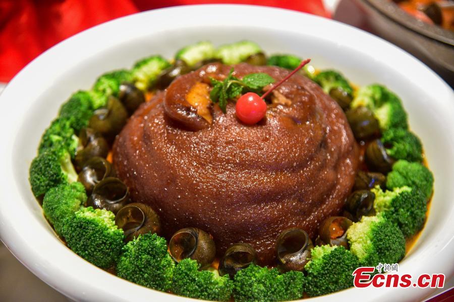 Trotters stewed with snails are shown at the gourmet exhibition in Liuzhou City, south China's Guangxi Zhuang Autonomous Region, Nov.2, 2021. (Photo: China News Service/Wang Yizhao)
