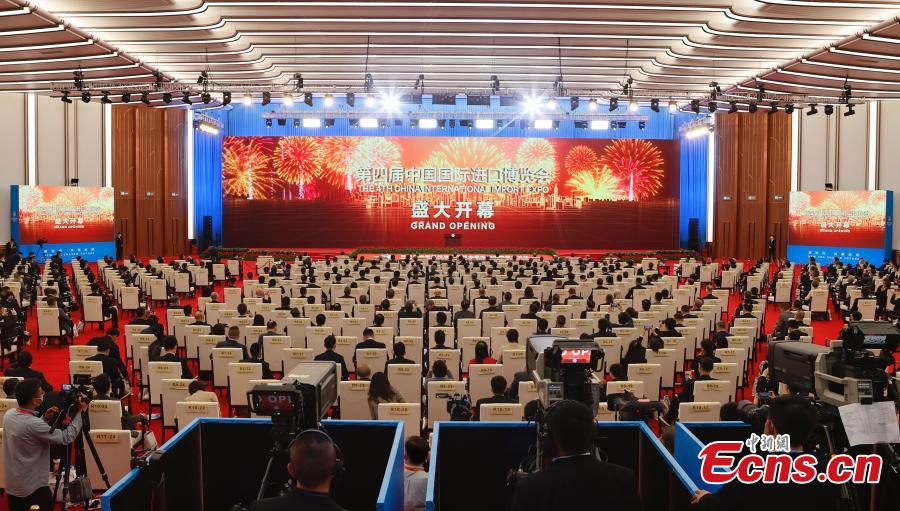 The opening ceremony of the 4th China International Import Expo (CIIE) kicks off in Shanghai, Nov.4, 2021. (Photo: China News Service/Zhang Hengwei)