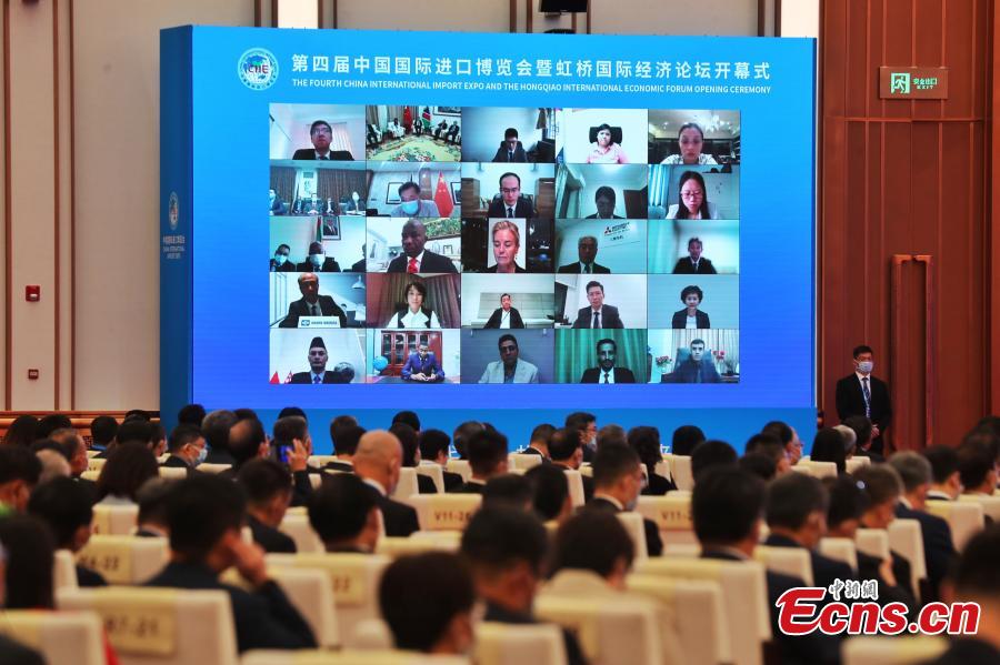 Foreign guests attend the opening ceremony of the 4th CIIE via video, Nov.4, 2021. (Photo: China News Service/Zhang Hengwei)