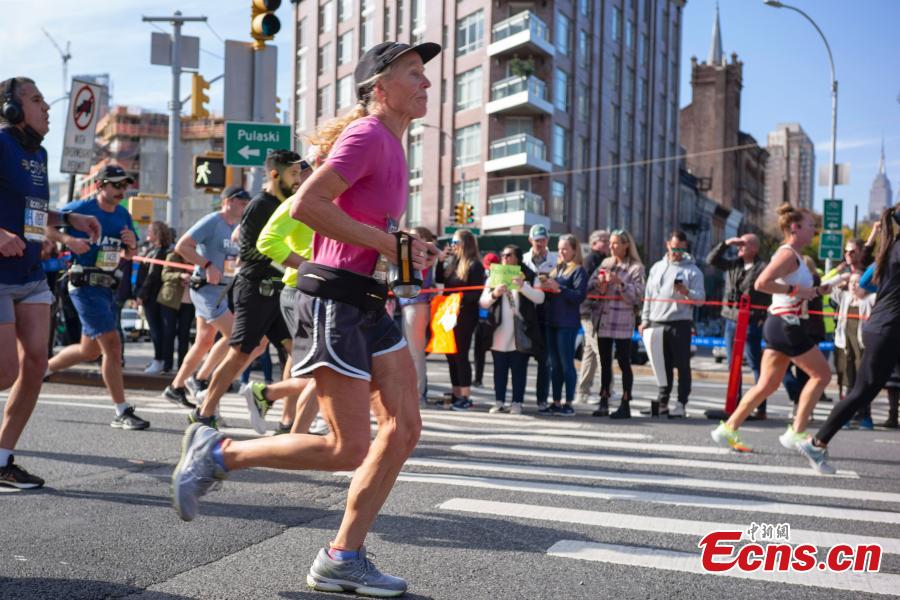 Runners of the New York City Marathon pass through Queens, New York City during the race, Nov. 7, 2021. (Photo: China News Service/Wang Fan)