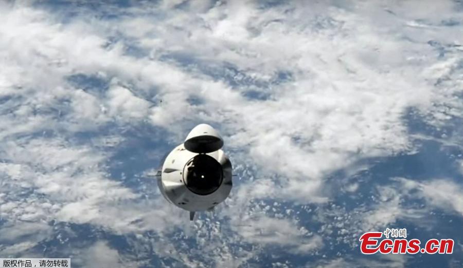 This NASA handout photo shows the SpaceX Crew Dragon Endeavour spacecraft as it lands with NASA astronauts Shane Kimbrough and Megan McArthur, Japan Aerospace Exploration Agency (JAXA) astronaut Aki Hoshide, and ESA (European Space Agency) astronaut Thomas Pesquet aboard in the Gulf of Mexico off the coast of Pensacola, Florida, Nov. 8, 2021. (Photo/Agencies)