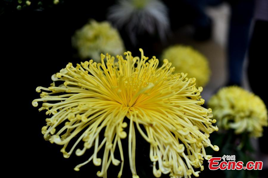Chrysanthemums are on display at the second Yangtze River Delta Chrysanthemum Show in Hangzhou Botanical Garden, Zhejiang Province, Nov. 10, 2021. (Photo/Zhang Yin)