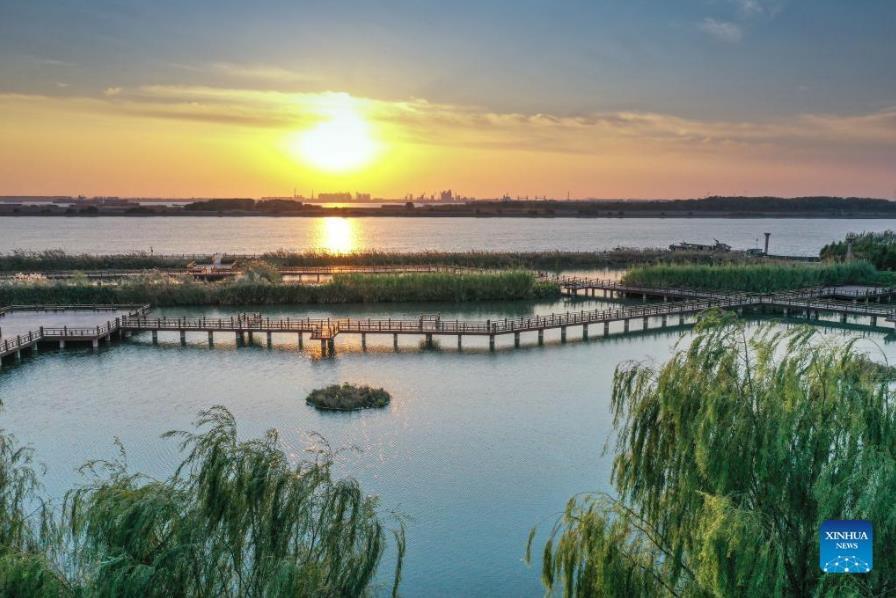 In recent years, Jiangsu Province in east China has promoted the restoration of the Yangtze River ecological environment with green development. Local authorities have dismantled illegal docks, shut down polluting enterprises and facilitated ecological wetlands on both sides of the river. Many years of tree planting and wetland protection along the river in Jiangsu have paid off. Now the Yangtze River in Jiangsu presents a new look featured by beautiful river beach wetlands and scenery. (Photo: Xinhua/YangLei)