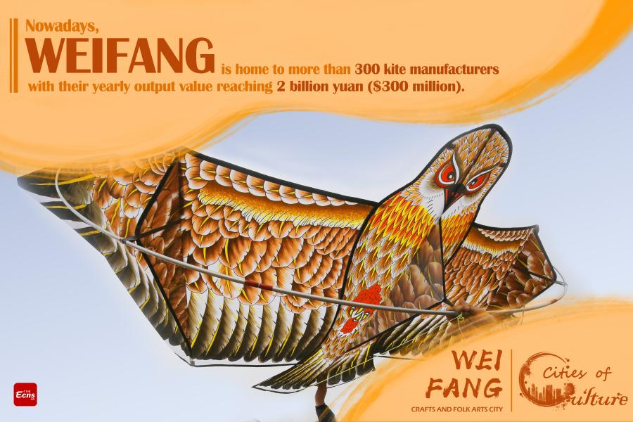 Nowadays, Weifang is home to more than 300 kite manufacturers with their yearly output value reaching two billion yuan ($300 million).