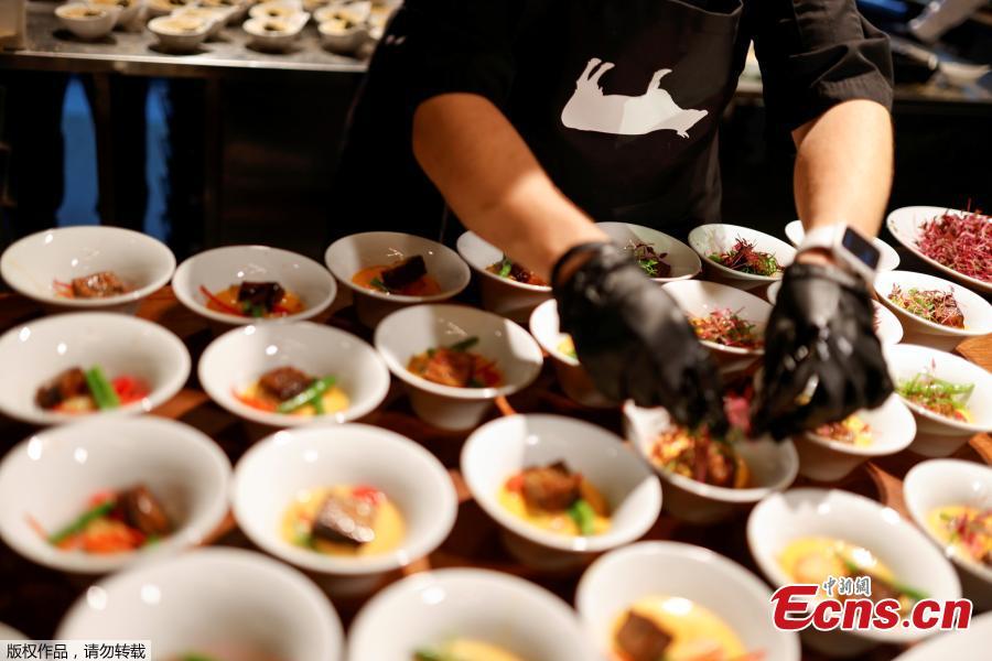 A chef prepares dishes with 3D printed plant-based steaks mimicking beef, produced by Israeli start-up Redefine Meat as part of an event marking the international commercial launch of its New-Meat product range in a restaurant in Tel Aviv, Israel, Nov. 15, 2021. (Photo/Agencies)