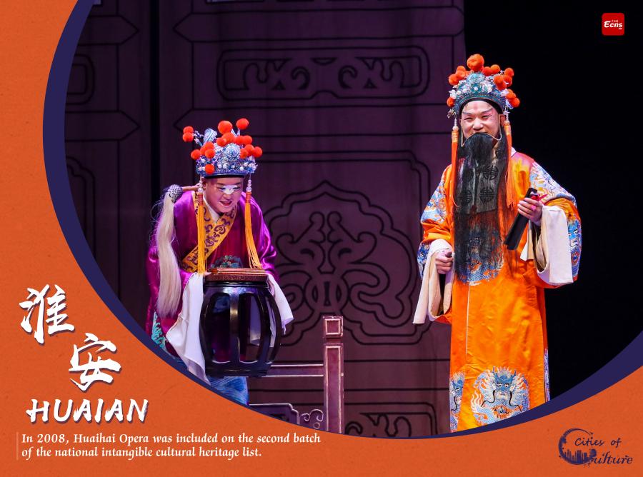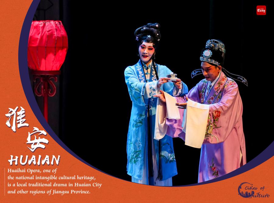 Huaihai Opera, one of the national intangible cultural heritage, is a local traditional drama in Huaian City and other regions of Jiangsu Province.