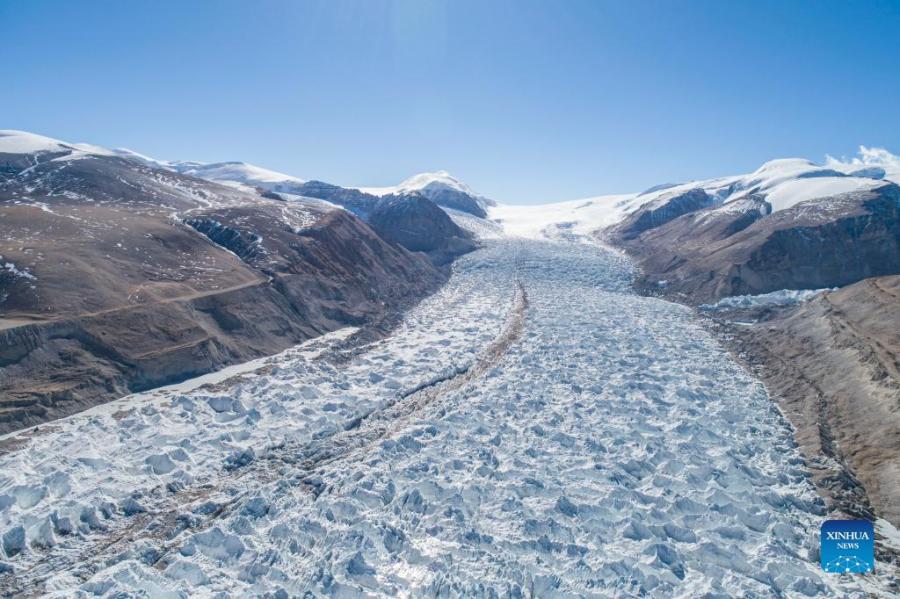 Photo taken on Nov. 20, 2021 shows the Gangbug Glacier in the border area between Nagarze and Kangmar counties, southwest China's Tibet Autonomous Region. (Xinhua/Sun Ruibo)