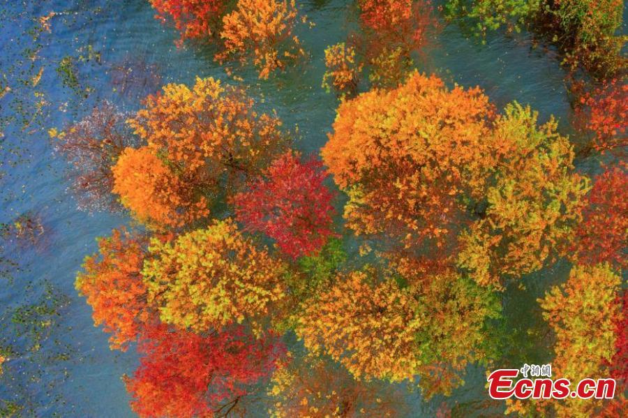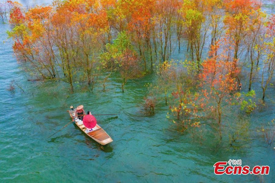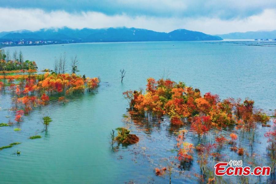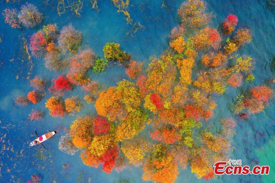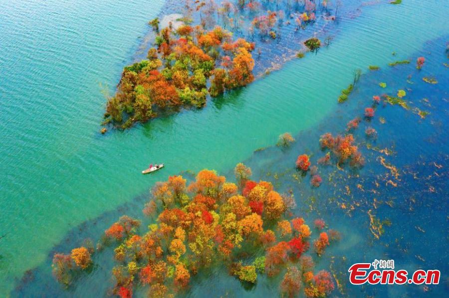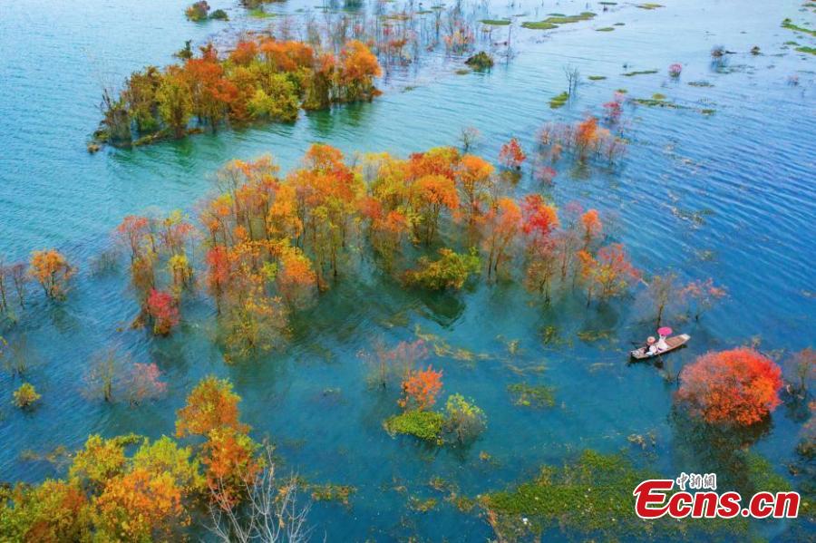 An aerial photo of a maple forest in Jishui County, east China's Jiangxi Province, Nov. 21, 2021. (Photo: China News Service/Li Xiaoming)