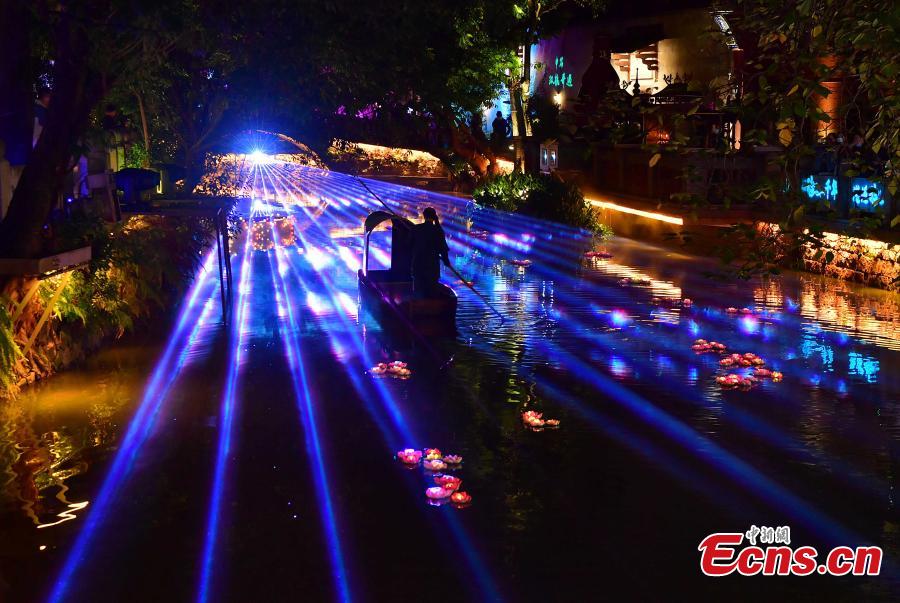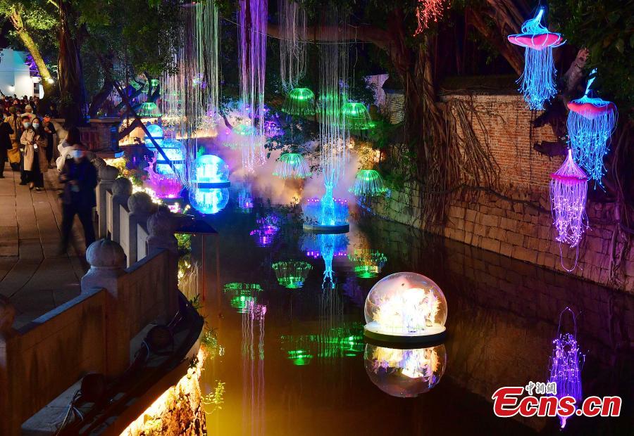 The Maritime Silk Road International Tourism Festival provides visitors with immersive acousto-optic shows in Fuzhou, east China's Fujian Province, Nov. 23, 2021. (Photo: China News Service/Zhang Bin).
