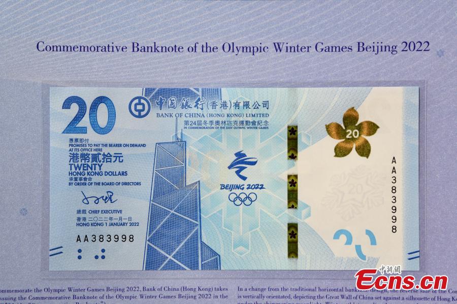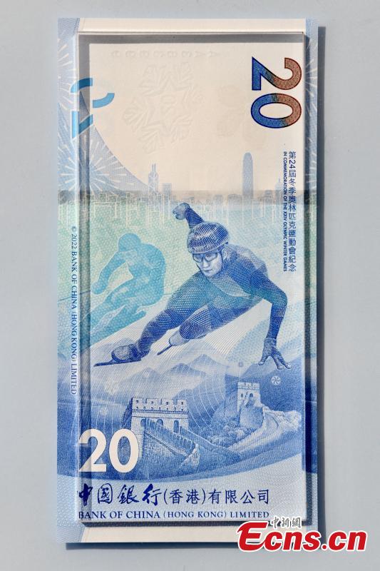 Bank of China (Hong Kong) (BOCHK) issued 2 million commemorative banknotes for Beijing 2022 Winter Olympics on Wednesday. Subscription and application of the commemorative banknotes will start from Dec. 1 to 10. Its earnings will be used to support local charities in Hong Kong.