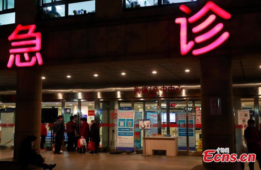 Family members of patients wait outside the emergency of a hospital in Shanghai, Nov. 25, 2021. (Photo: China News Service/Tang Junyan)