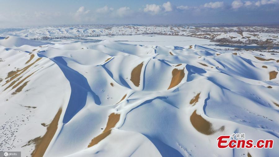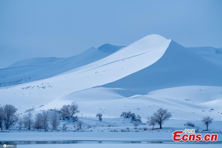 Snow covers the Taklimakan Desert in Yuli County, northwest China's Xinjiang Uygur Autonomous Region, Nov. 28, 2021, turning the place a winter wonderland. (Photo/IC)
