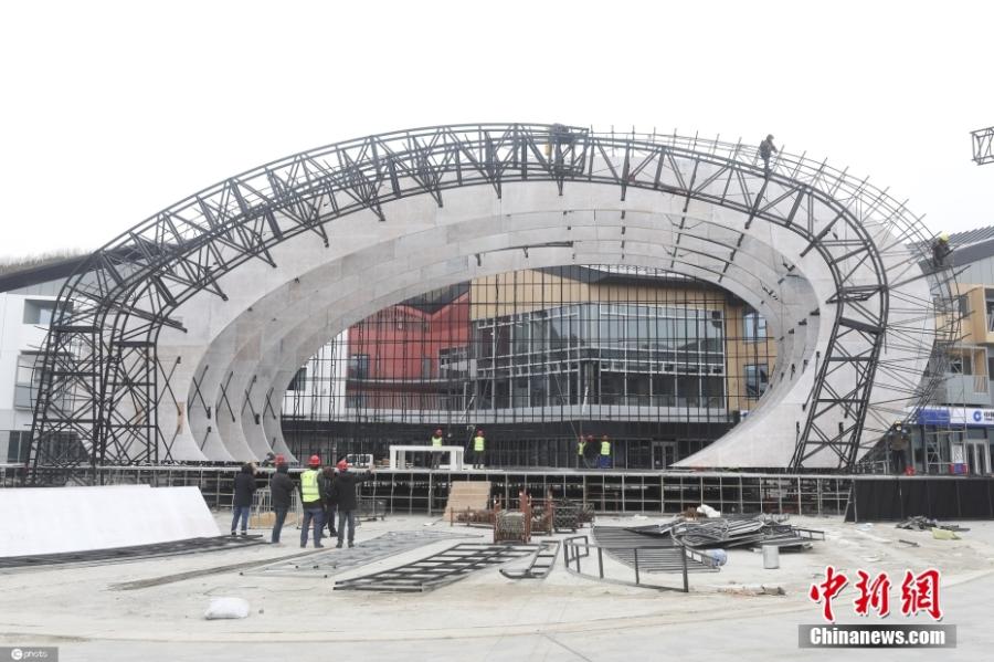 Construction of the awarding stage for the 2022 Winter Olympics is accelerated in Zhangjiakou, north China's Hebei Province, Nov. 29, 2021. Located in Chongli district, the stage is designed based on elements of natural conditions and snow events in the Zhangjiakou competition zone. (Photo/IC)
