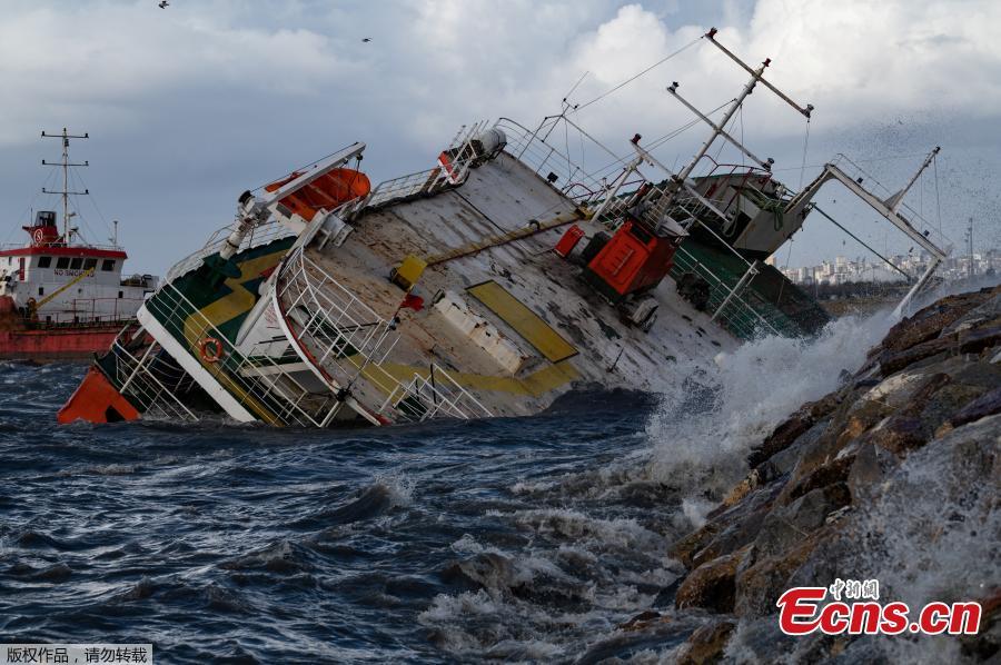 Photo shows a boat that has capsized near the Bosphorus due to strong winds in Istanbul on Nov. 30, 2021. (Photo/Agencies)