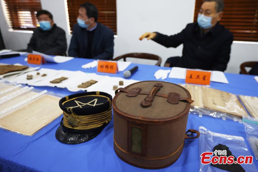 Wang Weixing, director and researcher of Nanjing Massacre Research Center of Jiangsu Provincial Academy of Social Sciences, introduces the new historical relics in Nanjing, capital of east China's Jiangsu Province, Dec.1, 2021. (Photo: China News Service/Yang Bo)