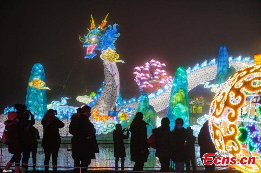 A large traditional Chinese Lantern Festival is held at a park in Blagnac, France, Nov. 30, 2021. Eighty craftsmen from Zigong, southwest China's Sichuan Province, spent three months decorating the park with Chinese colorful lanterns. (Photo/IC)