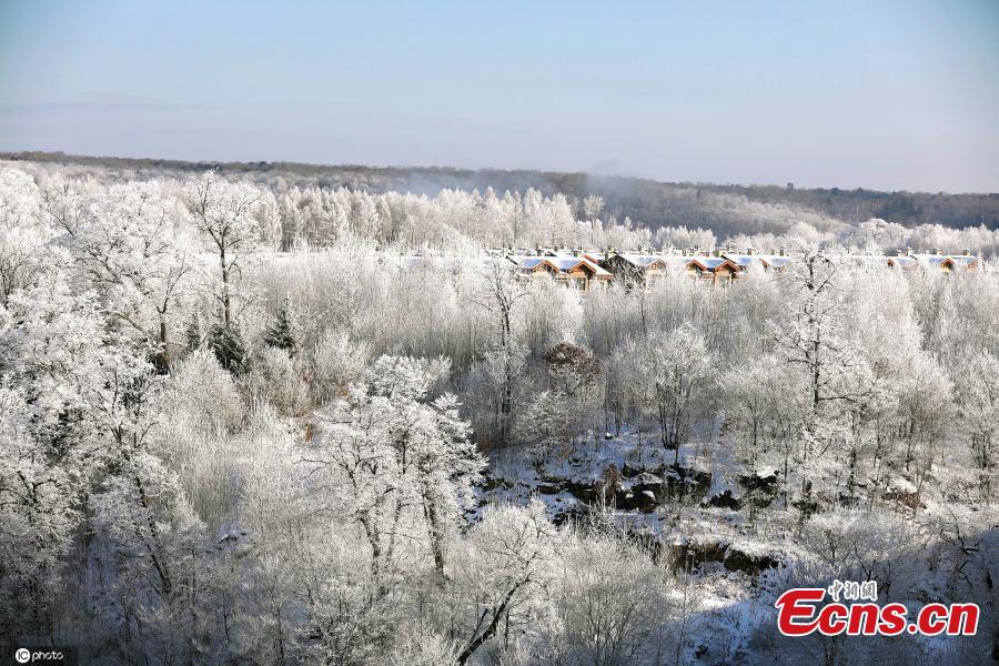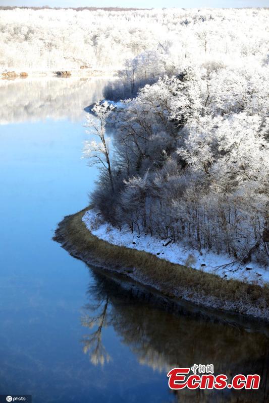 Fusong County, NE China's Jilin Province, sees the first rime this winter as a continuous temperature drop. (Photo/IC)