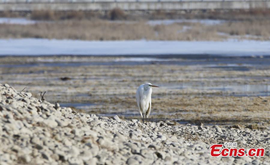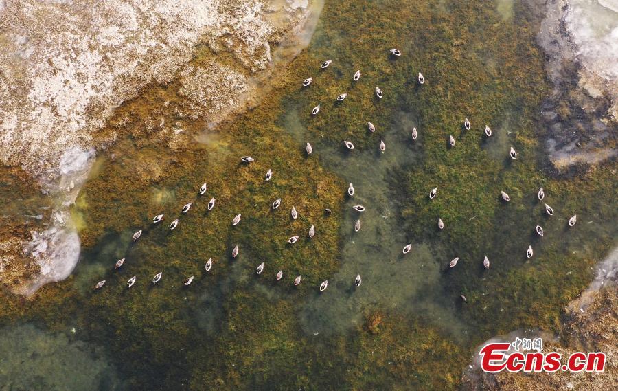 Waterfowls forage at Beichuan River Wetland Park in Xining, northwest China's Qinghai Province, Dec. 2, 2021. (Photo: China News Service/Ma Mingyan)