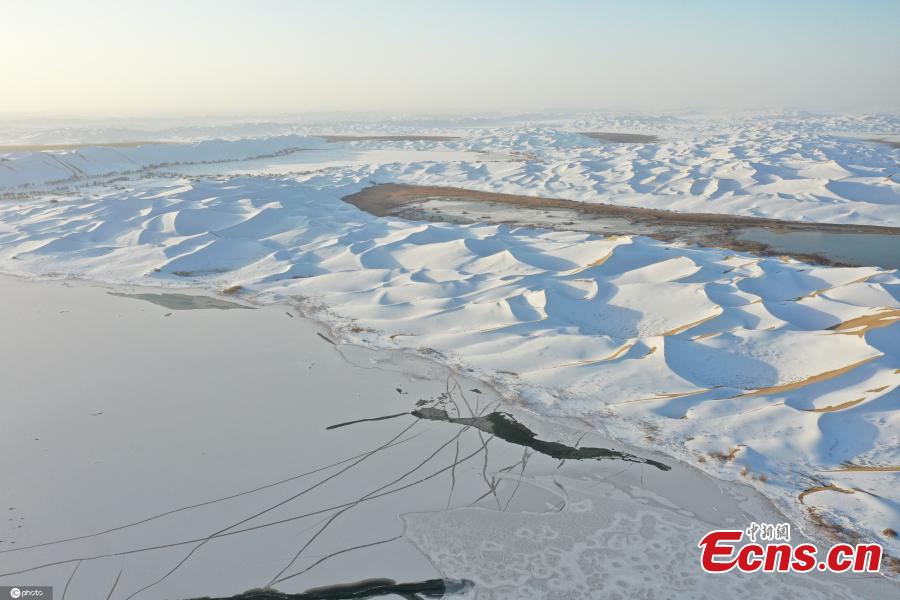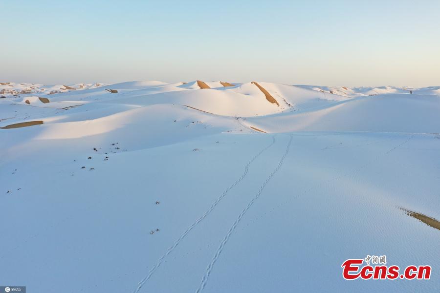 Photo taken on Dec. 5, 2021 shows the snow scenery on the edge of Taklamakan Desert in northwest China's Xinjiang Uygur Autonomous Region. (Photo/IC)