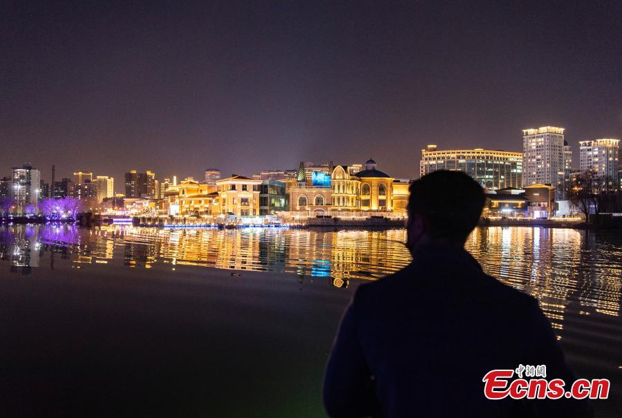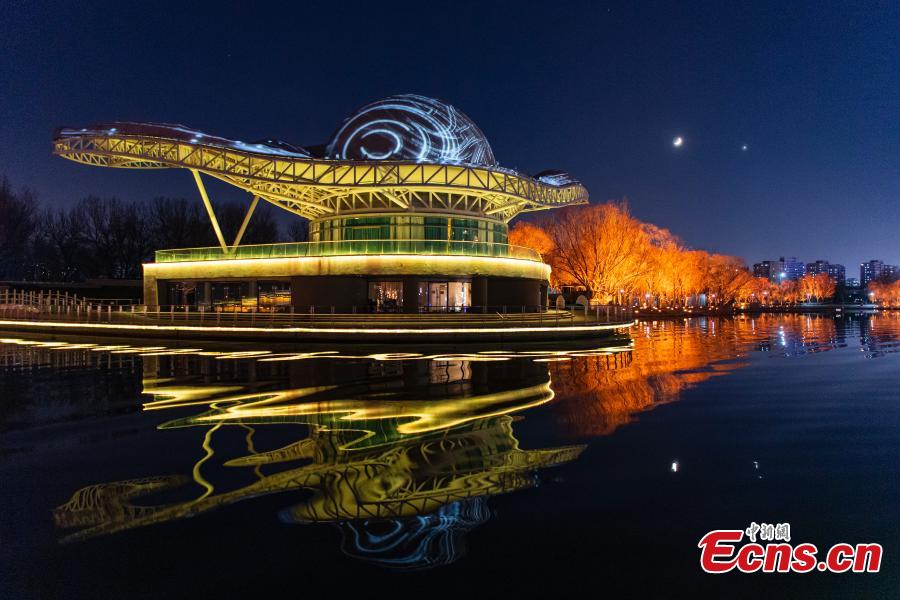 Colorful lights brighten up the Liangma River International Style Waterfront in Chaoyang District, Beijing, capital of China, Dec.7, 2021. (Photo: China News Service/Hou Yu)
