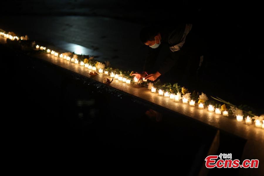 They placed candles in the forms of"1937""12·13"and"white doves"and presented flowers to mourn more than 300,000 Chinese civilians and unarmed soldiers killed during the Nanjing Massacre committed by the Imperial Japanese Army in 1937.