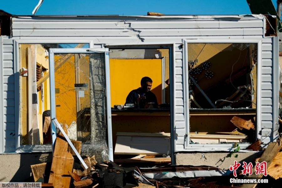 The photo taken on Dec. 12, 2021 shows debris of buildings after a devastating tornado hit Mayfield, Kentucky, U.S. (Photo/Agencies)