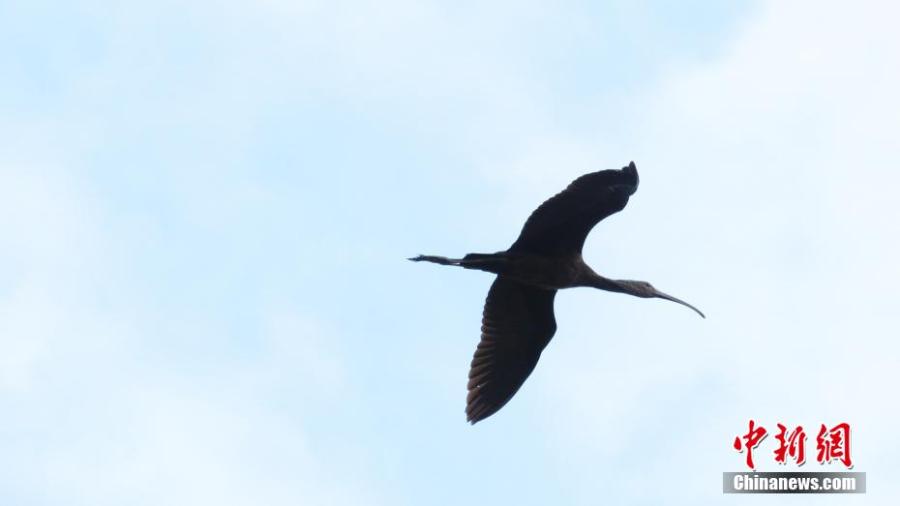 The undated photo shows a glossy ibis, under first-class state protection in China, are spotted at Danzhou Bay in south China's Hainan Province. (China News Service/Chen Zhengping)