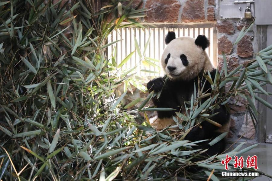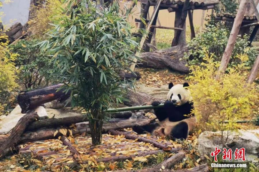 A giant panda enjoy bamboo at the Chengdu Research Base of Giant Panda, China's Sichuan Province, Dec 13, 2021. (Photo/IC)