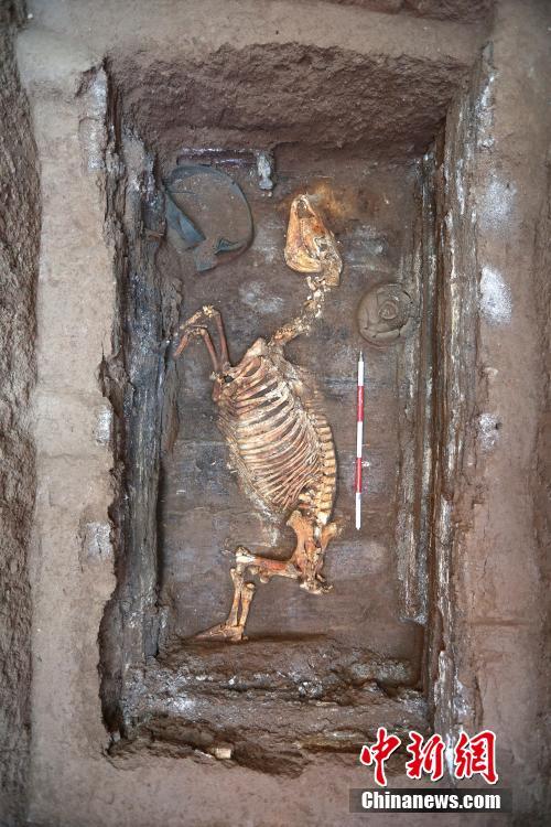 The photo taken on Oct. 2, 2018 shows the horse bone unearthed from the large tomb that is confirmed to be the real Baling mausoleum of Emperor Wendi in Western Han Dynasty at Jiangcun Village in Xi'an City, northwest China's Shaanxi Province. (Photo provided by Shaanxi Provincial Institute of Archaeology)