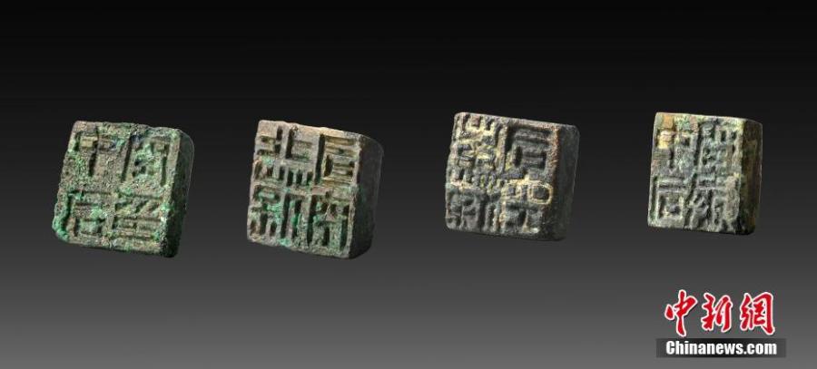 The photo taken on May 7, 2020 shows the seals unearthed from the large tomb that is confirmed to be the real Baling mausoleum of Emperor Wendi in Western Han Dynasty at Jiangcun Village in Xi'an City, northwest China's Shaanxi Province. (Photo provided by Shaanxi Provincial Institute of Archaeology)