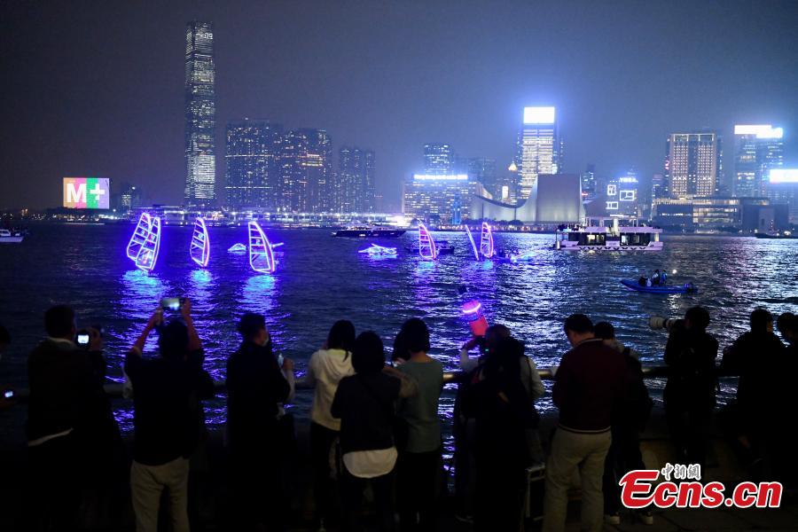 The Windsurfing Association of Hong Kong held the Haitong International 2021-2022 Hong Kong Windsurfing Circuit at Victoria Harbour on Tuesday in the form of an evening exhibition match, attracting many citizens.
