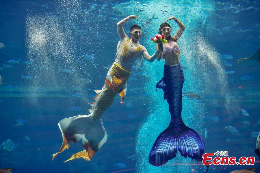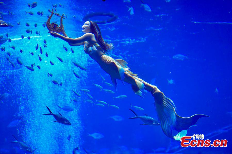 China's first mermaid contest kicked off in Sanya on Tuesday. The contest had three events -- men's single, women's single and four-person team -- with a total of 41 contestants participating in it.
