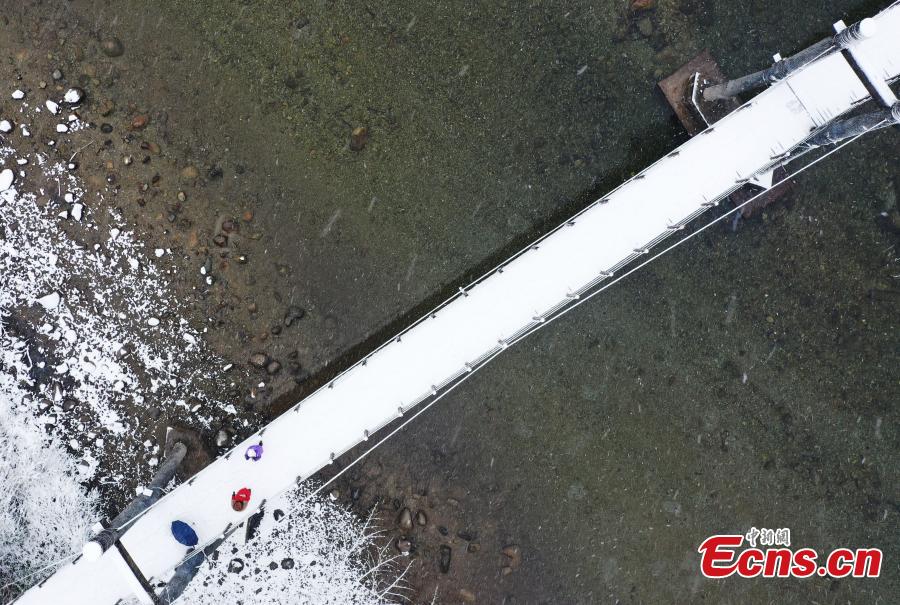 Snow-capped Shadong village looks picturesque at the foot of Fanjing Mountain in the southwest China’s Guizhou Province, Dec. 26, 2021. (China News Service/Li he)
