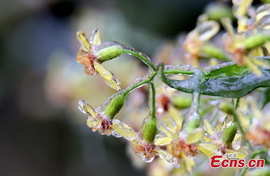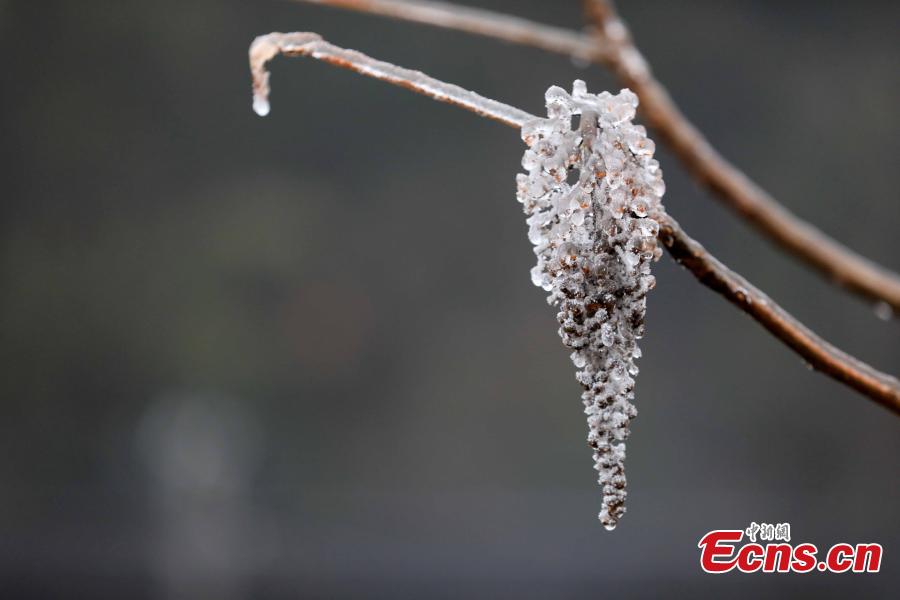 Icicles hang down from plants in a village of Rong'an County, Liuzhou, south China's Guangxi Zhuang Autonomous Region. (China News Service/Tan kaixing)
